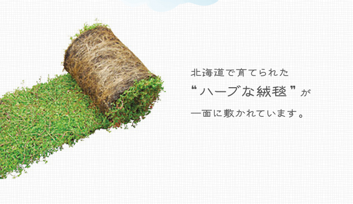 北海道で育てられた”ハーブな絨毯”が一面に敷かれています。