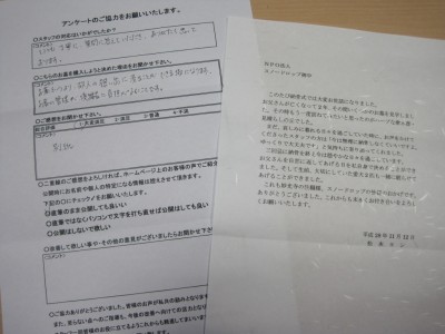 ハーブな樹木葬「見晴らしの丘」に納骨されたM様よりアンケートのご返送とお手紙を頂きました。